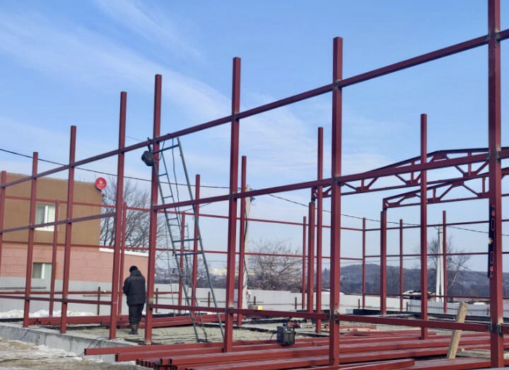 Выполнены работы по установке фундамента и проведены испытания свай под зрительным залом, закуплены сендвич-панели для облицовки здания и крыши. В данный момент ведутся работы по установке металлокаркаса: сделаны фермы, варится каркас здания.