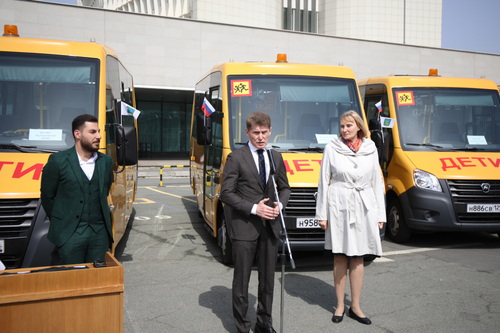 По словам главы региона, новый транспорт получили общеобразовательные учреждения Лесозаводского, Находкинского, Спасского, Лазовского, Пограничного и Тернейского, Шкотовского и Яковлевского округов, а также Красноармейского, Михайловского, Надеждинского и Спасского районов. Кроме того, транспорт получила Черниговская коррекционная школа-интернат.