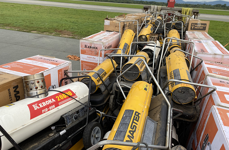 Как сообщает пресс-служба министерства по делам ГОЧС, тепловые пушки доставили в распределительный склад ведомства. Оттуда груз будет направлен в наиболее пострадавшие районы края.