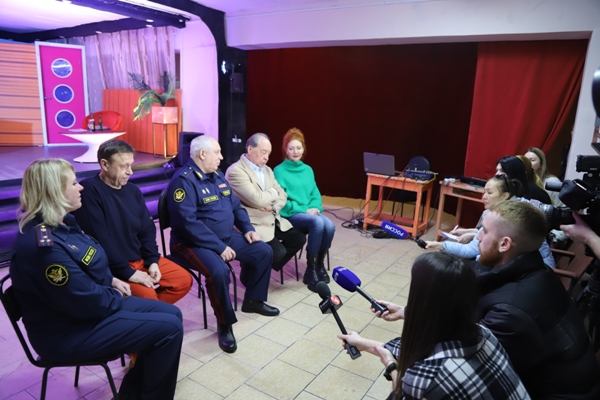 Перед началом спектакля прошла пресс-конференция Вадима Версткина, Ефима Звеняцкого, начальника ИК-10 Оксаны Грицковой, заслуженного артиста России Евгения Вейгеля. Они рассказали об организации сотрудничества и дальнейших планах.