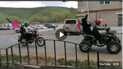 Автоколонна проследовала по улицам села. Ребята разместили на мотоциклах георгиевские ленты, патриотические лозунги, российские флаги и знамёна Победы.
