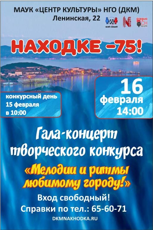 Мелодии и ритмы - любимому городу Стартовал открытый городской творческий конкурс под таким названием, посвященный 75-летию Находки