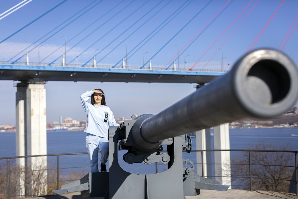 В клипе мы можем лицезреть макеты орудий — скорострельных пушек, грозно охраняющих вход в перешеек пролива Босфор-Восточный. А на заднем плане открывается величественный вид на вантовый мост, гордо окрашенный триколором Российского флага, поднимая в душе дух патриотизма.