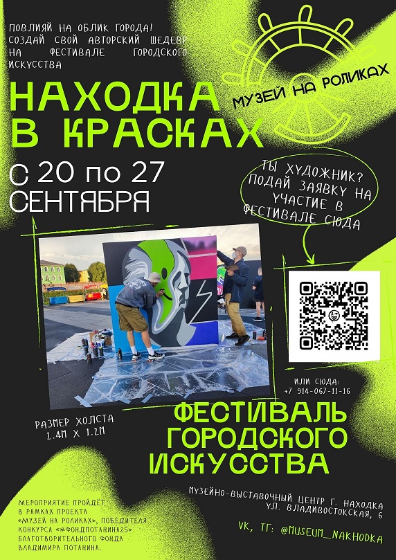 Фестиваль городского искусства «Находка в красках» приглашает к участию художников, дизайнеров и творческих людей. Им предлагается создать авторские работы на щитах, посвящённые сюжетам прошлого, настоящего и будущего Находки, которая в 2025 году отметит свой 75-летний юбилей.