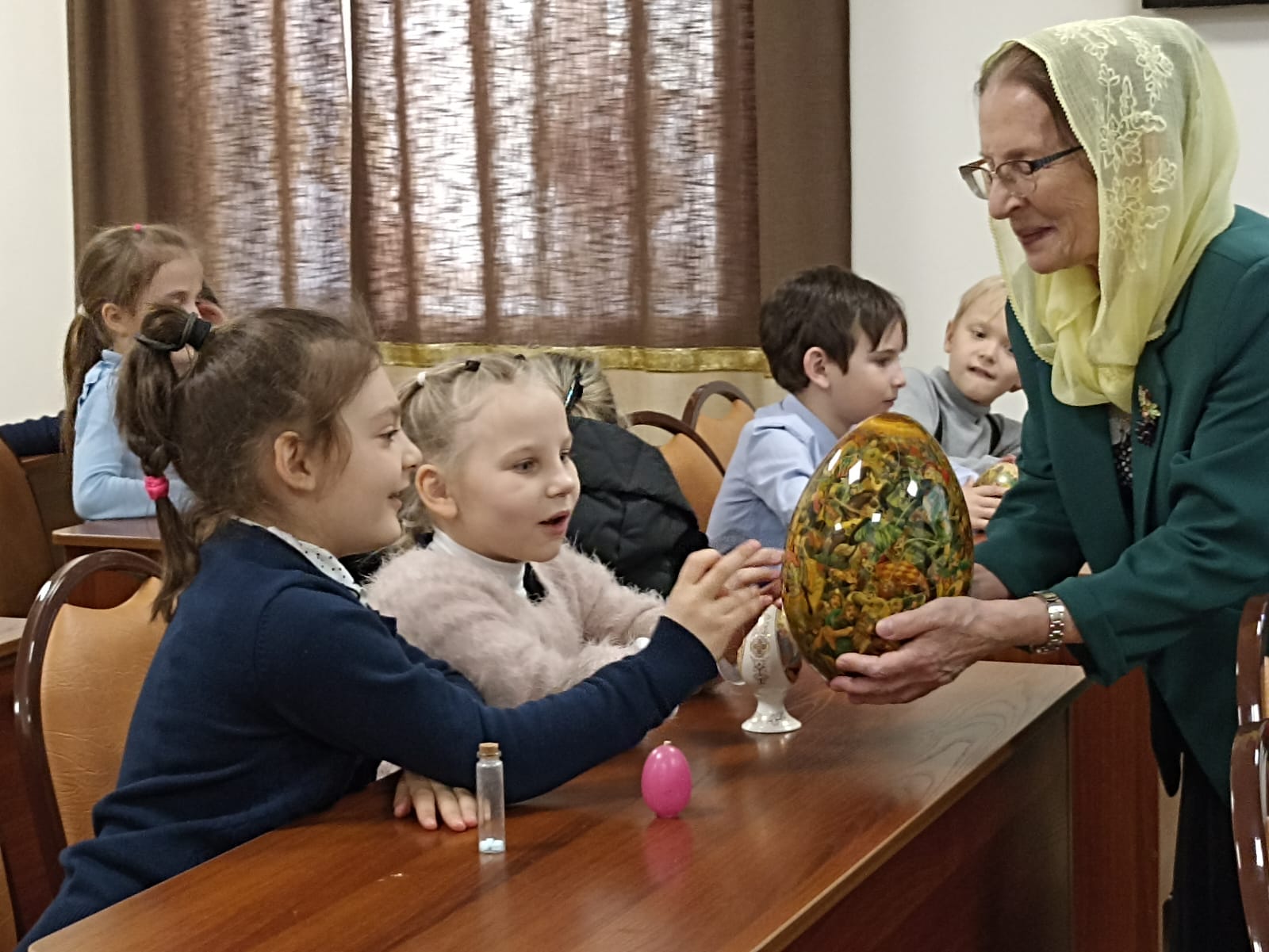 В преддверии Великого Поста в Центре в очередной раз побывали и учащиеся начальных классов Лицея №9. В рамках цикла бесед о русских православных традициях инокиня Мария на доступном для детей языке рассказала об истории праздника, о великом и важном значении Пасхи для всех людей в мире, о традиционном подарке – крашеном яйце как символе Воскресения. Ребята познакомились с особенностями Пасхальной трапезы, узнали о традиционных блюдах праздничного стола – творожной пасхе и куличе.