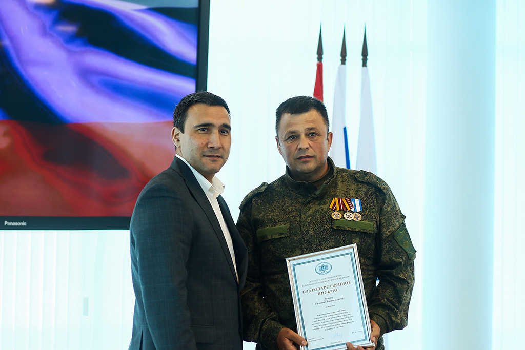 Благодарственным письмом депутата Государственный думы РФ Виктории Николаевой награжден прапорщик Валерий Зимин за преданность служению Родине, добросовестное выполнение служебного и гражданского долга, проявленное мужество, стойкость и героизм во время выполнения боевых задач в зоне проведения специальной военной операции по демилитаризации и денацификации территории Украины.