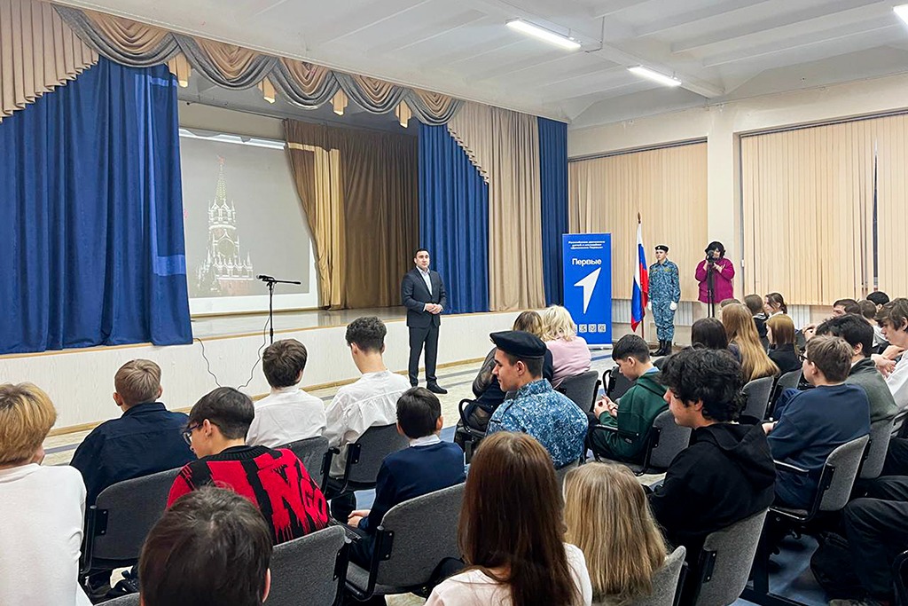 В школе №1 «Полюс» глава города Тимур Магинский провёл урок «Разговоры о важном» для учеников 9-10 классов.