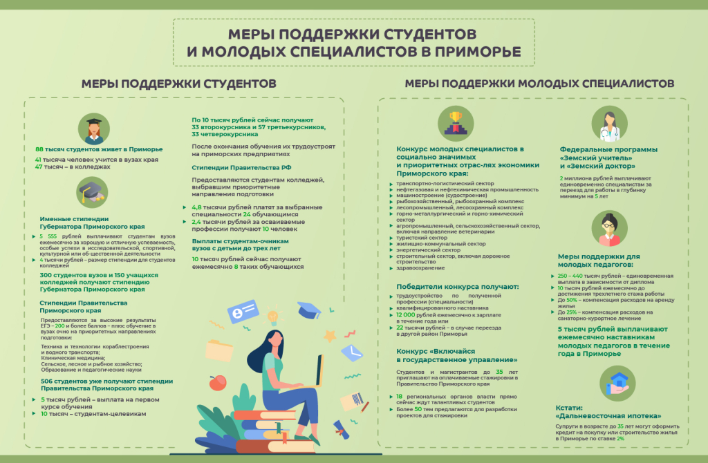 КАКАЯ ПОДДЕРЖКА ОКАЗЫВАЕТСЯ В ПРИМОРЬЕ СТУДЕНТАМ И МОЛОДЫМ СПЕЦИАЛИСТАМ. ОБЗОР