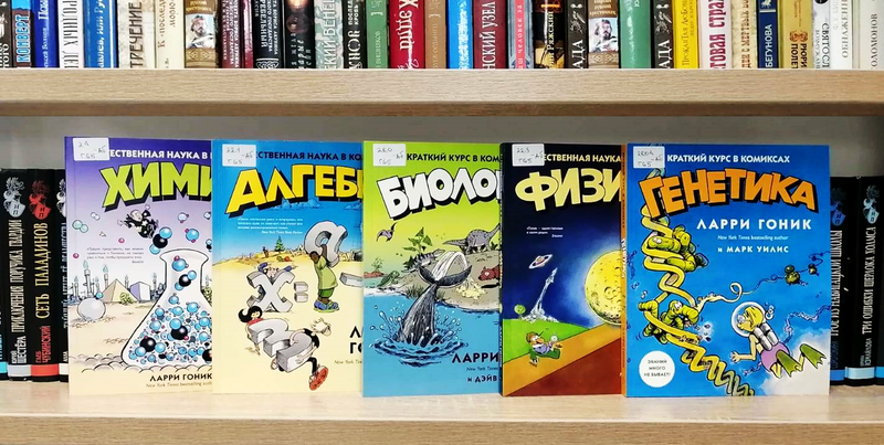 Автором представленных книг является известный человек в области науки Ларри Гоник – математик по образованию и карикатурист по призванию. Уникальная способность автора преподносить сложный материал весело, интересно и легко для восприятия, да еще и в безупречно структурированном виде. Его книги являются отличным пособием для школьников, а также для всех желающих поддержать в форме свои способности в области математики, физики, химии.