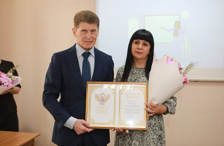 Губернатор Олег Кожемяко вручил Почетные грамоты Министерства просвещения РФ отличившимся педагогам Приморского края.