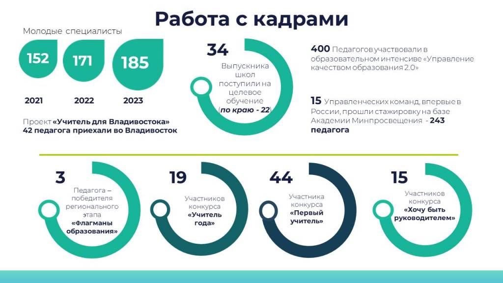 Во Владивостоке 2022-2023 учебный год проходил под эгидой точных наук. В учреждениях образования города, в том числе и дошкольных, состоялось немало мероприятий, направленных на повышение интереса детей к изучению математики и физики. Результаты этого проекта стали особенно видны еще летом по итогам государственных экзаменов у выпускников. Так, средний балл ЕГЭ по математике стал выше, чем в предыдущем году, на шесть единиц, а по физике на три единицы. Всего в копилке достижений этого года числится 20 стобалльных результатов единого экзамена по разным предметам. Также повысились баллы школьников, которые в этом году сдавали ОГЭ.