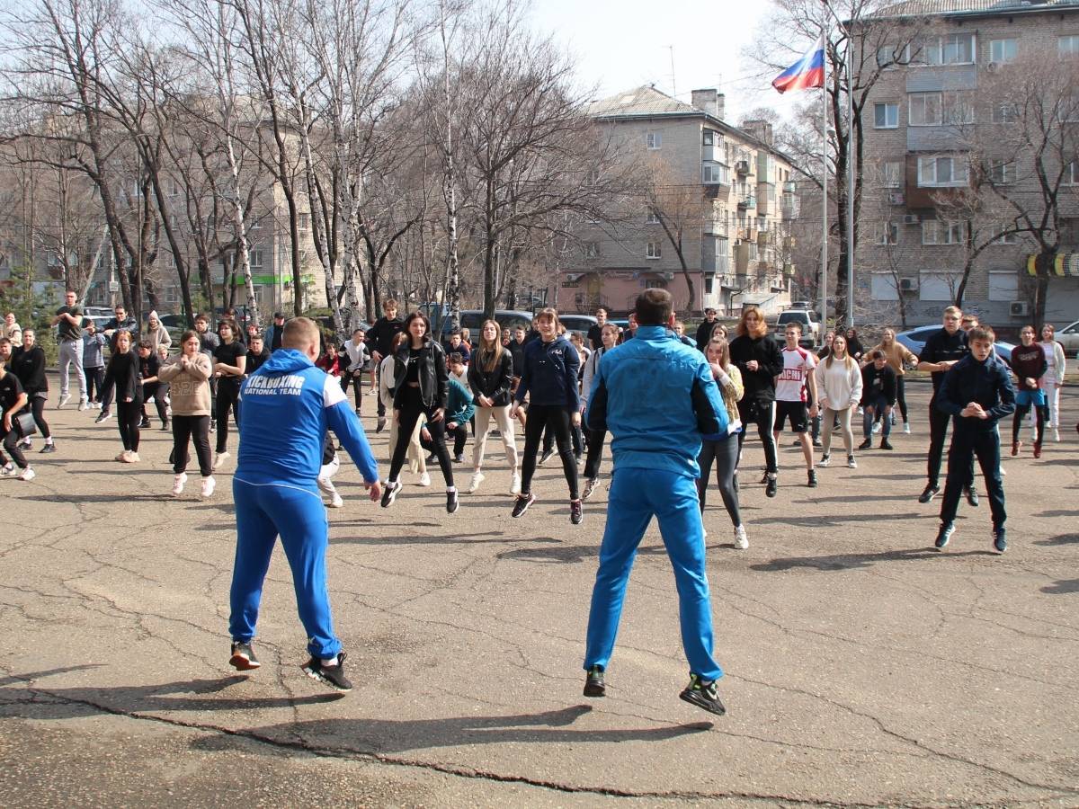 Студенты уссурийского колледжа сделали зарядку вместе с чемпионом