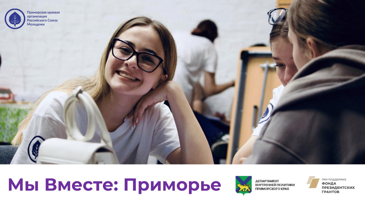 Проект «Мы Вместе: Приморье» реализуется Приморским РСМ за счет средств субсидии из краевого бюджета, предоставленной Получателю по итогам конкурсного отбора социально-ориентированных НКО в Приморском крае в 2023 году по соответствующему приоритетному направлению деятельности, а также при финансовой поддержке Фонда президентских грантов