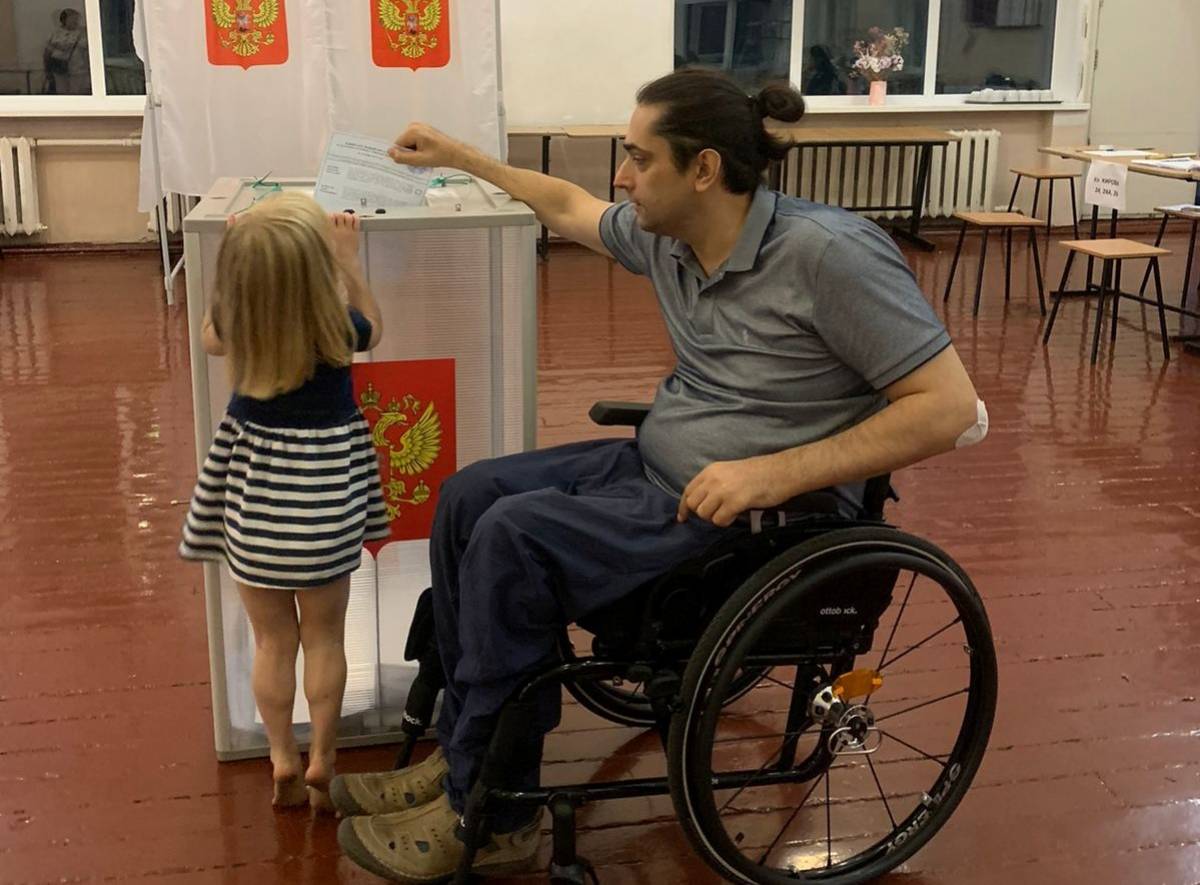 Председатель общественного совета партийного проекта «Единая страна – Доступная среда», руководитель дальневосточной общественной организации инвалидов-спинальников «Ковчег» Артем Моисеенко реализовал свое избирательное право в Советском районе г. Владивостока. В заключительные минуты второго дня голосования он проголосовал на участке № 830 в школе, в которой учился.