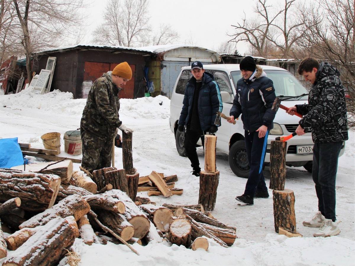 Пока мужчины выполняют боевые задачи в ходе специальной военной операции, их семьи остались без «мужского плеча». Решить многие бытовые вопросы, которые не под силу хрупким женщинам с детьми, помогают студенческие волонтерские группы. Парни работают с удовольствием – кому воду или уголь принести, кому дрова нарубить, а может и двор от снега почистить.