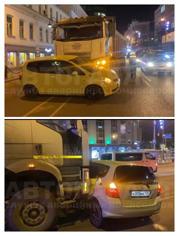 Авария с участием грузовика и легкового автомобиля произошла во Владивостоке вечером, 23 января,
