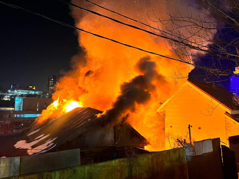 Полыхало мощно. В центре Владивостока рядом с крупным ТЦ ликвидируют пожар