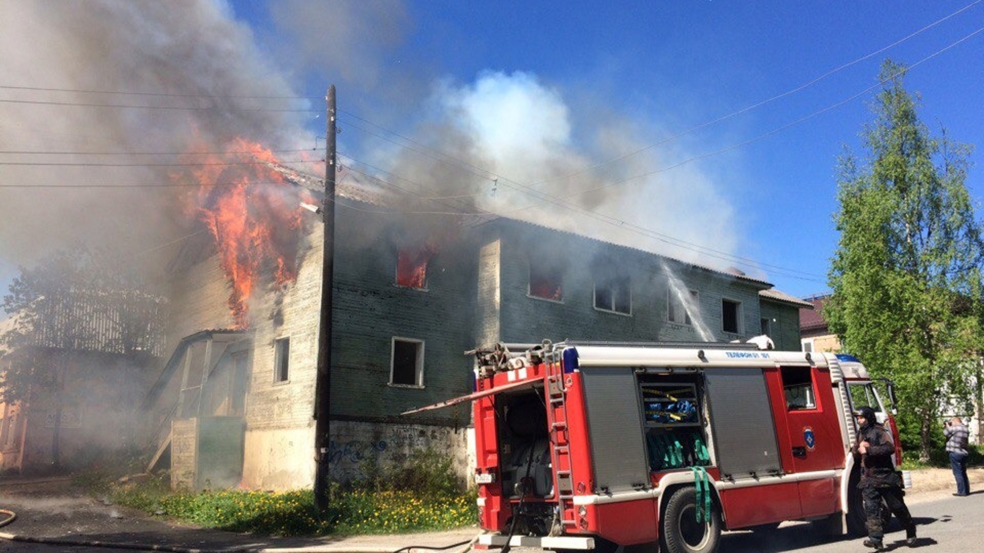 Пожарные получили сообщение о возгорании в районе 5 утра. Они выехали на место происшествия и прибыли через 7 минут. В это время из окна комнаты уже вырывался огонь, который перешел на крышу здания.