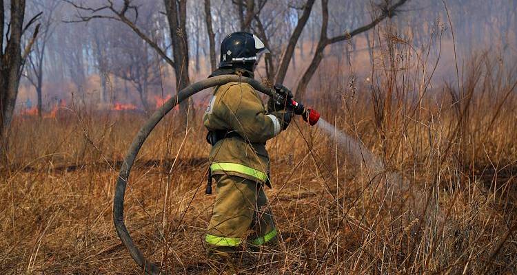 Пожарные ликвидируют пал сухой травы во Владивостоке