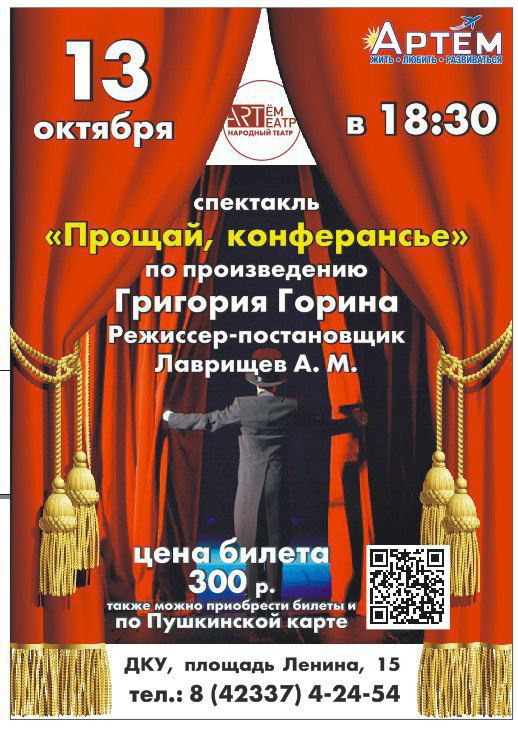 Артемовцев приглашают на спектакль «Прощай, конферансье»