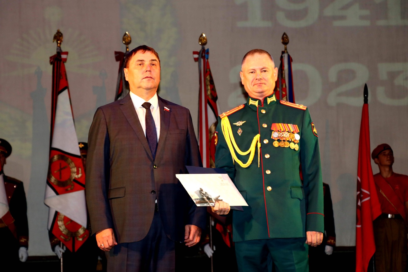 С теплыми словами к присутствующим также обратился председатель Думы Александр Черныш. Он поздравил войсковое объединение от главы округа Евгения Коржа и себя лично. Затем вручил военнослужащим Почетные грамоты и Благодарности от администрации и Думы округа, а общевойсковому объединению ценный подарок.
