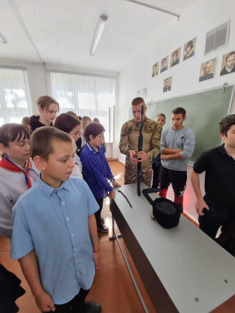 Казаки рассказали ребятам об истории, традициях и обычаях российского казачества, а также провели мастер-класс по разборке и сборке автоматов.