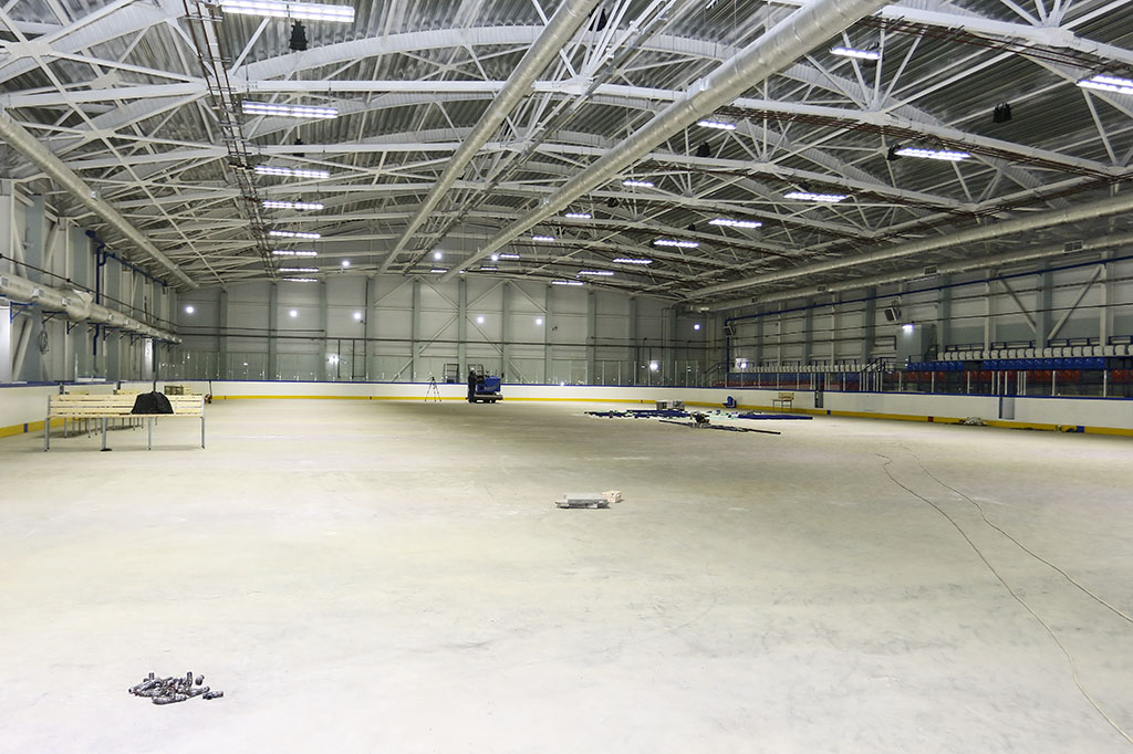 Гордостью и «сердцем» арены, безусловно, является ледовое поле. К его заливке планируется приступить в ближайшее время. Особое внимание уделяется качеству воды, которая перед заливкой пройдет несколько этапов очистки.