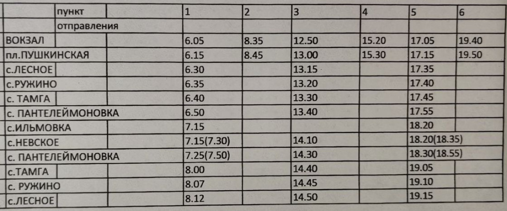 Ильмовка – 7:15; 18:20