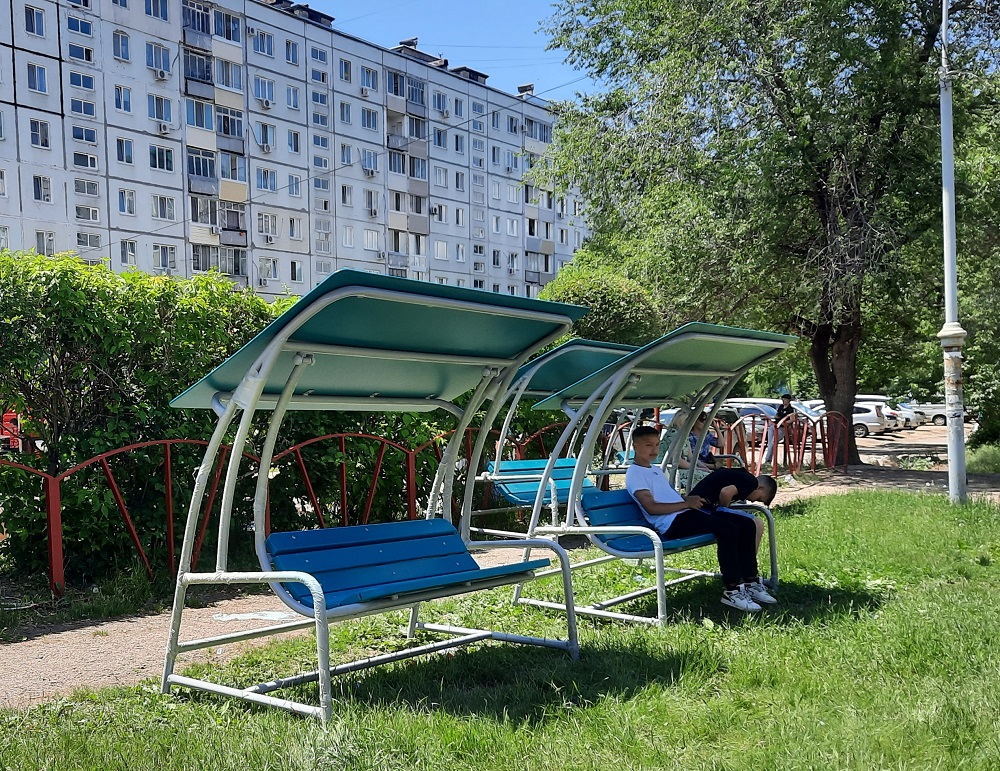 Здесь появятся малые игровые формы для малышей, а также лавочки, в том числе и с навесами от солнца. Также будет отремонтировано покрытие на площадке.