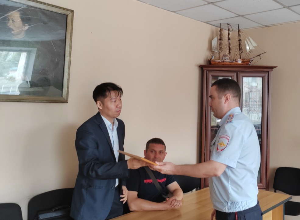 Анатолий Петрович поблагодарил Андрея Хе за активную гражданскую позицию. Вручил ему благодарственное письмо за большую просветительскую работу по правовому информированию граждан, помощь в проведении мероприятий, направленных на профилактику противоправных деяний, совершаемых с использованием информационно-коммуникационных технологий.