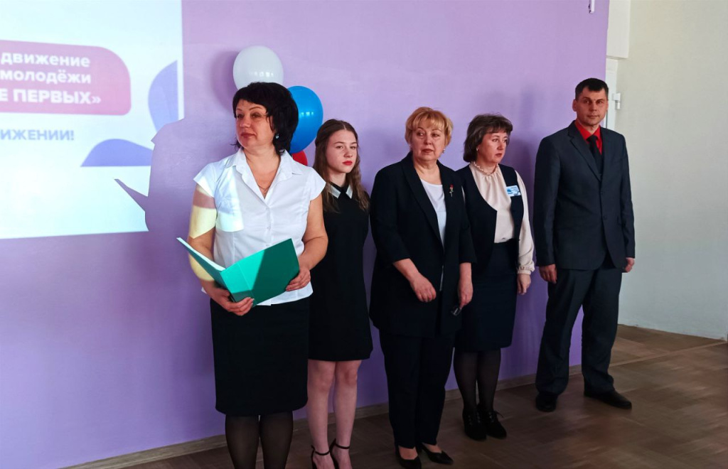 Директор школы Татьяна Григорьева вручила Президенту школьного самоуправления Юлии Шатаевой Свидетельство первичного отделения РДДМ и поздравила всех со стартом: «Уверена – вместе мы сможем все!»