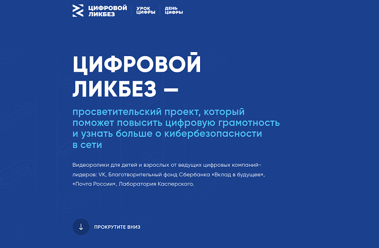 Отметим, всероссийский просветительский проект «Цифровой ликбез» запущен VK и «Цифровой экономикой» при поддержке Минпросвещения и Минцифры России.