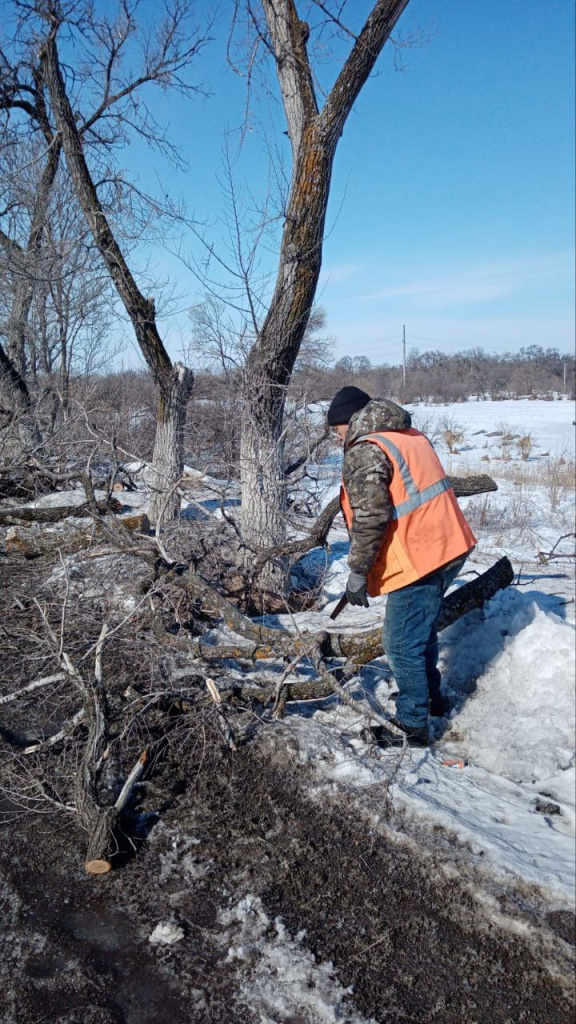 Вдоль дороги по улице Набережная работники Муниципального бюджетного учреждения «ЖКХ и благоустройство» сегодня ведут работы по спилу аварийных деревьев в рамках безопасности дорожного движения и благоустройства.