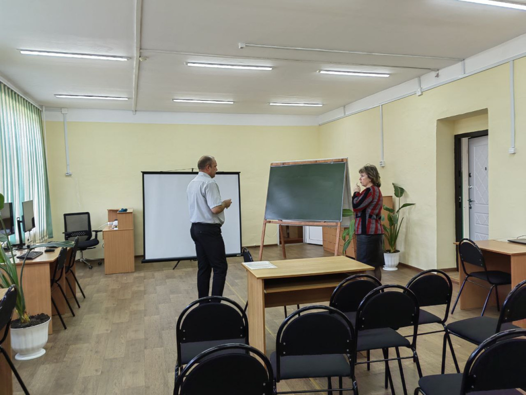 Кабинет уже функционирует, хоть и не в полном объеме. Здесь проходят уроки информатики и теории вероятности, а также разные мероприятия.