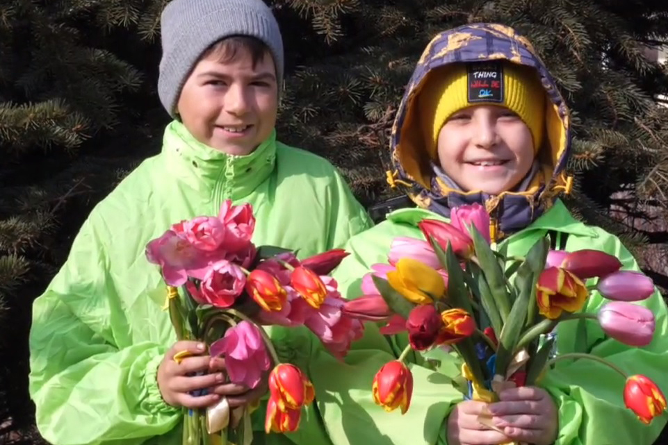 Волонтёры Фонда «Восточный Порт» поздравили жительниц Врангеля сотнями тюльпанов