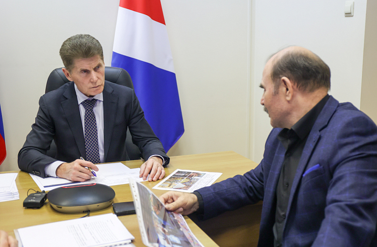 О работе ТОСа «Зеленый экипаж» на острове Русском рассказал его председатель Петр Гуляев, пришедший на прием к главе региона. Благодаря самоорганизации жителей удалось благоустроить придомовые территории, сделать площадку для массовых мероприятий. В общей сложности ТОС смог привлечь около 10 миллионов рублей, участвуя в различных госпрограммах. Активист поблагодарил Олега Кожемяко за поддержку ТОСов в регионе.
