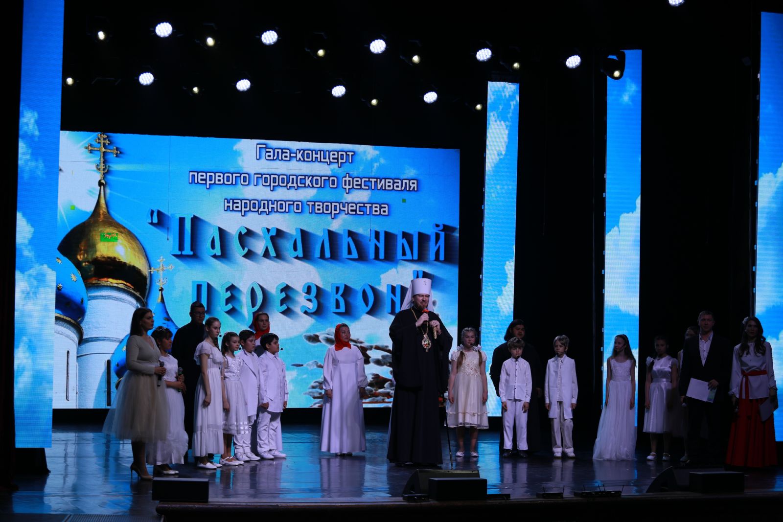 Перед началом концертной программы архипастырь обратился к присутствующим с приветственным словом: «Сердечно всех вас поздравляю со светлым праздником Святой Пасхи! И хочу обратить к вам вечно живые слова древнего апостольского приветствия: Христос Воскресе! Я рад в эти Пасхальные дни, когда вся вселенная торжествует и радуется о Светлом Христовом Воскресении, прибыть сюда, в город Артем, для того, чтобы в этом уютном зале встретиться с вами в рамках первого Пасхального городского фестиваля народного творчества. Это замечательное начинание. Мне сообщили, что полторы тысячи заявок поступило на участие в фестивале, а это значит, что этот Праздник живет в сердцах жителей городского округа. Праздник Пасхи живет в сердцах наших детей и взрослых. У меня перед началом гала-концерта была возможность ознакомиться с замечательными рисунками, поделками, которые подготовили дети. Они восхищают и умиляют. Видно, что сделаны с любовью. С любовью к Богу, с усердием. Дети старались. Я думаю, что и певческие коллективы, которые сегодня выступят на этой сцене, также нас порадуют. Праздник Святой Пасхи — светлый и радостный, мы празднуем победу Бога над смертью. Победу Бога над грехом, над злом этого мира. Господь воскрес, а значит даровал возможность всем нам в будущем воскреснуть и войти в радость своего Господа. Я хотел бы поблагодарить администрацию городского округа города Артема за то, что замечательная инициатива по организации фестиваля была поддержана. И мы видим, что это действительно имеет успех, что это востребовано и нужно. Думаю, этот фестиваль будет расширяться, и быть может, через год приобретет уже статус краевого фестиваля. Другие районы, поселки, города, также направят своих делегатов, которые нас порадуют на этой сцене своими Пасхальными песнопениями, песнями о любви к России, о любви к своей малой родине. Я хотел бы призвать благословение Господа Воскресшего на всех вас. Хотел бы пожелать всем вам, прежде всего, Пасхальной радости. Пусть эта радость помогает переживать все трудности, невзгоды сегодняшнего непростого времени. Будем помнить, что Господь воскрес, и Его благодать, Его сила, Его власть пребывает вместе с нами до сегодняшнего дня, а значит нам ничего не страшно. Хотелось бы также пожелать вам хорошего вечера, положительных эмоций, и пусть Господь всех нас хранит в мире, единстве, согласии и любви. Еще раз всех вас поздравляю с праздником. Христос Воскресе!»