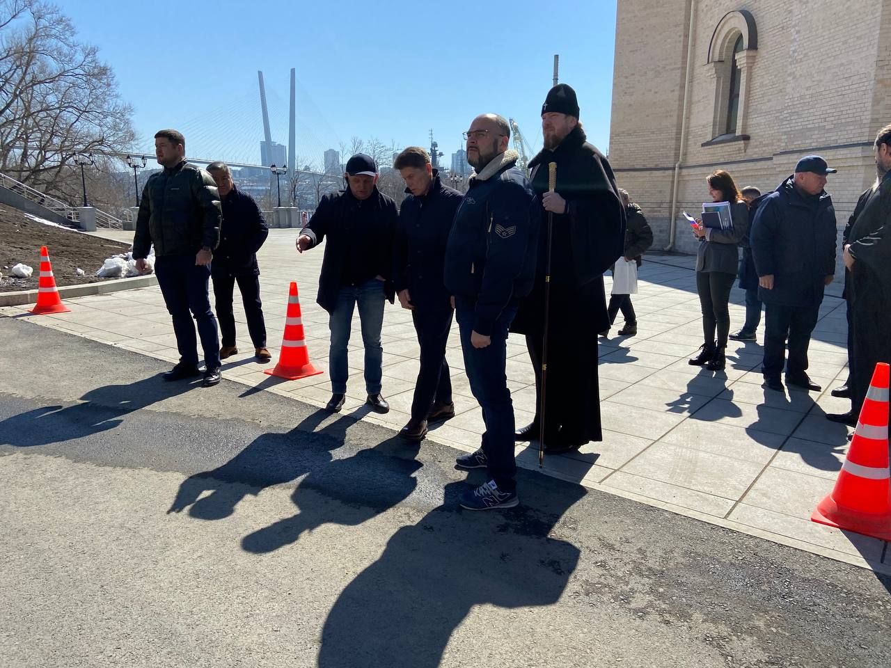 Владивосток . 18 марта 2023 года на строительной площадке Спасо-Преображенского кафедрального собора состоялся обход территории главного храма Приморья, участие в котором приняли митрополит Владивостокский и Приморский Владимир, губернатор Приморского края Олег Кожемяко, глава города Владивостока Константин Шестаков, секретарь Владивостокской епархии, ответственный за строительство Спасо-Преображенского кафедрального собора протоиерей Игорь Талько, министр имущественных и земельных отношений приморского края Виталий Лунев, руководитель инспекции по охране объектов культурного наследия Приморского края Владимир Осецкий, директор муниципального предприятия «Владивостокское предприятие электрических сетей» (ВПЭС) Алексей Родькин.