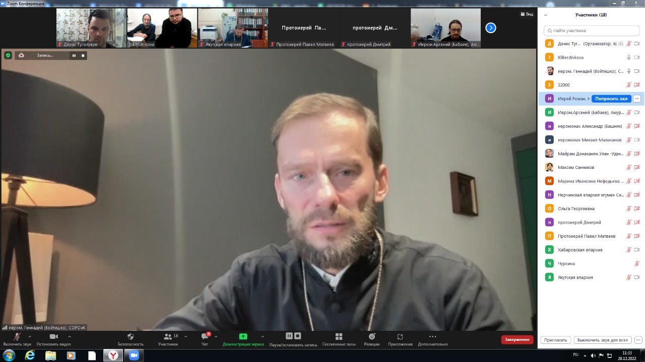 Иерей Владимир Пыжиков и Ирина Геннадьевна Бердникова, методист ОРОиК, приняли участие в онлайн-совещании Синодального отдела с епархиями Дальнего Востока