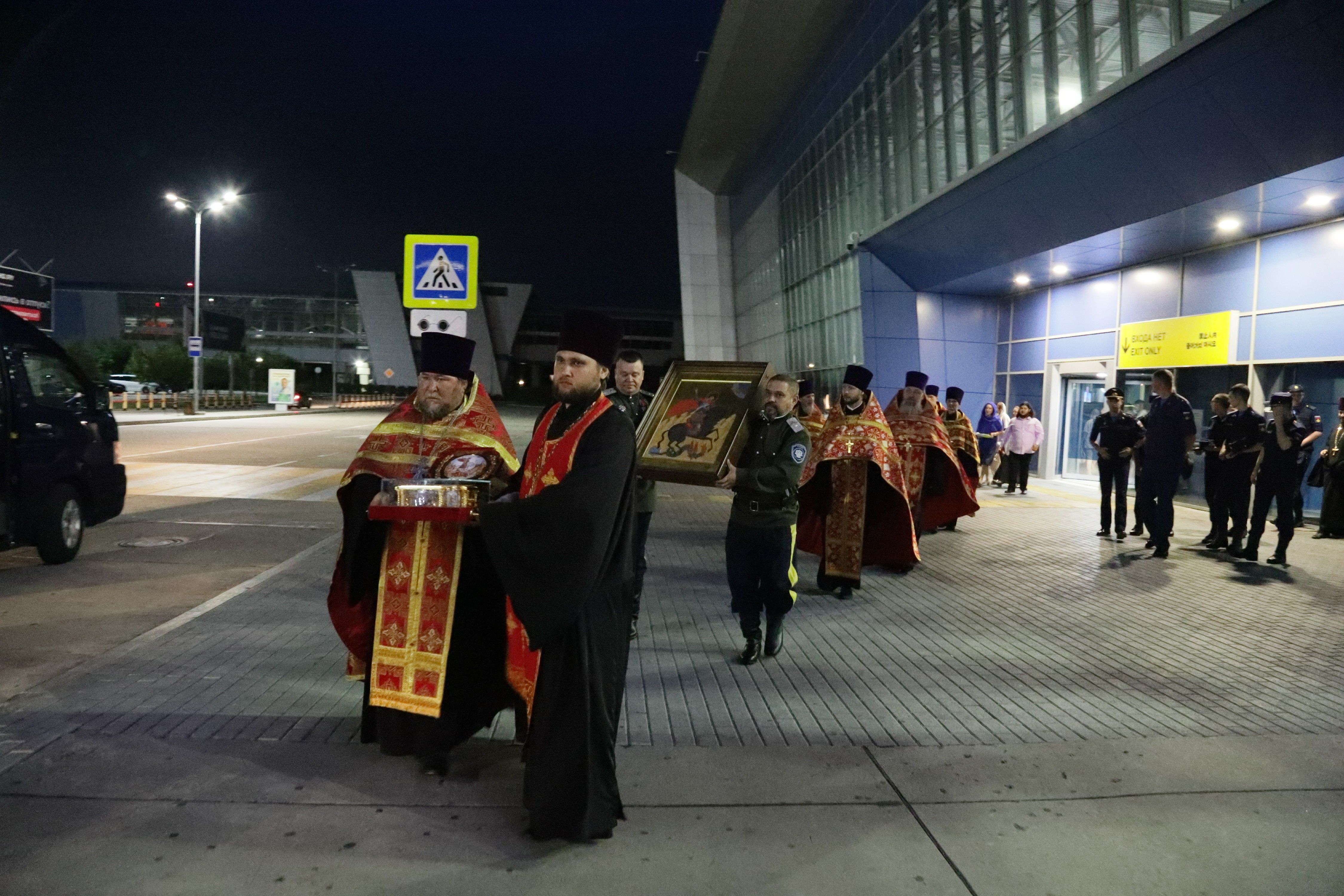 Кневичи . 9 июля 2023 года в Международный аэропорт «Владивосток» спецбортом доставлен ковчег со святыми мощами великомученика Георгия Победоносца и его икона.