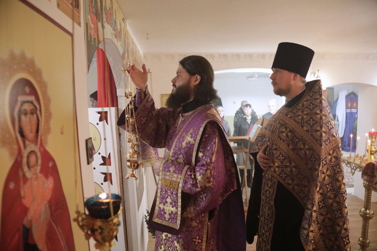 Его Высокопреосвященству сослужили: благочинный Надеждинского благочиния, настоятель храма святого благоверного великого князя Александра Невского снп. Вольно-Надеждинское протоиерей Евгений Маляр; настоятель храма Рождества Христова пгт. Славянка протоиерей Анатолий Колесников; настоятель храма Иверской иконы Божией Матери иерей Алексий Синенко; заместитель благочинного I Владивостокского благочиния иерей Михаил Тутаев.