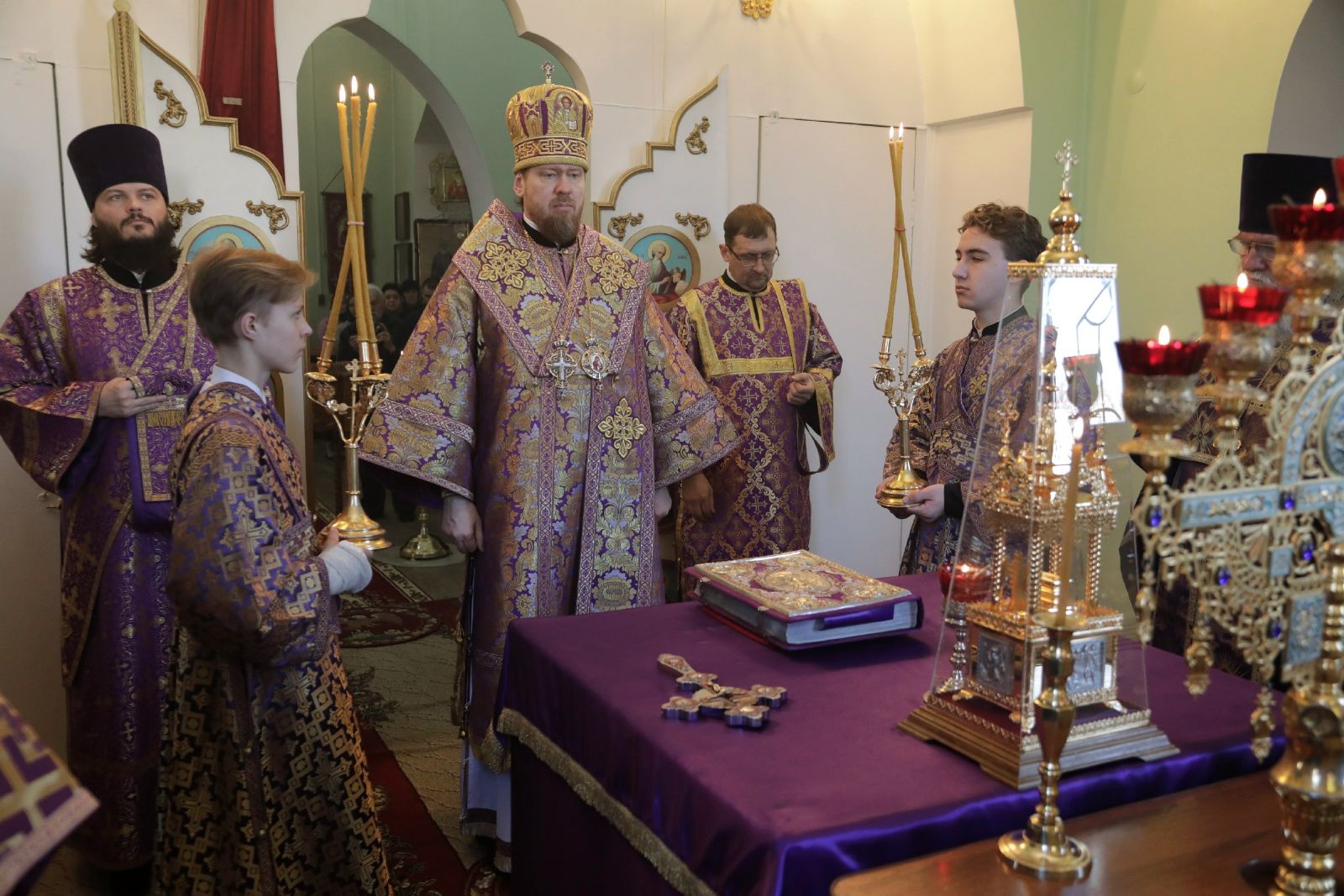 Его Высокопреосвященству сослужили: благочинный Уссурийского благочиния, настоятель Никольского храма города Уссурийска протоиерей Андрей Машанов; настоятель Серафимовского храма протоиерей Григорий Цуркан; иерей Павел Моисеев; иеромонах Платон (Карпов); ответственный за организацию архиерейских богослужений иерей Дионисий Ищенко.
