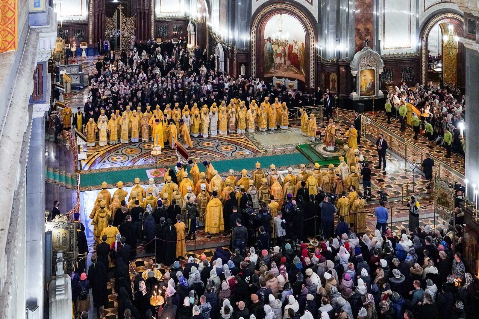 Богослужебные песнопения исполнил Патриарший хор Храма Христа Спасителя (регент И.Б. Толкачев).