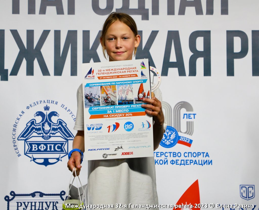 В официальном зачете класса «Оптимист» участвовали 390 спортсменов из 29 регионов России. У девушек (до 16 лет) с преимуществом практически в 40 очков победительницей стала представительница КСШОР Екатерина Юрку из Владивостока. В прошлом году в акватории геленджикской бухты Екатерина была второй, а затем выиграла первенство страны.