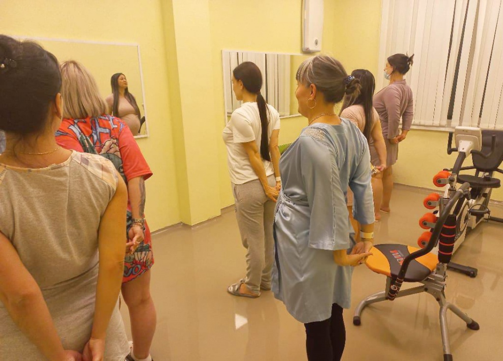В центре также работает спортивный зал с тренажёрами для беременных.