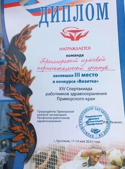 🏆За проморолик по подготовке к соревнованиям перинатальному центру был вручён кубок и диплом XIV Спартакиады работников здравоохранения Приморского края.
