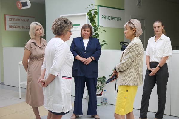 В ходе осмотра работы взрослой поликлиники министр обозначила проблематику, связанную с записью на прием к докторам, доступностью узких специалистов. Был предложен вариант совместной реализации регионального ведомственного проекта «Запись на прием к врачу», где разные формы записи, в том числе дистанционные, максимально доступны для пациента.