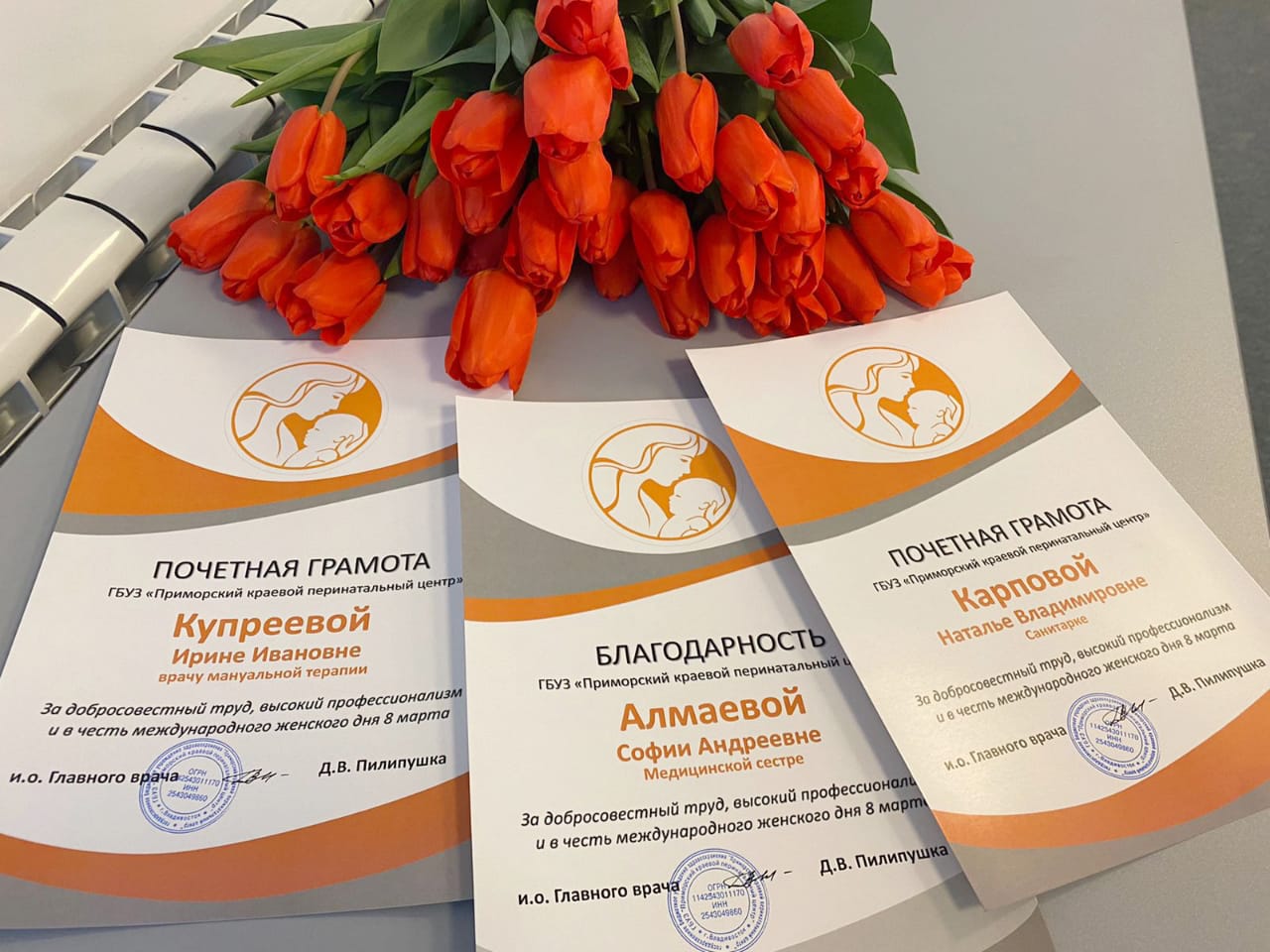 По доброй сложившейся традиции отличившиеся женщины-врачи, медсёстры, санитарки и другие специалисты были отмечены почётными грамотами.